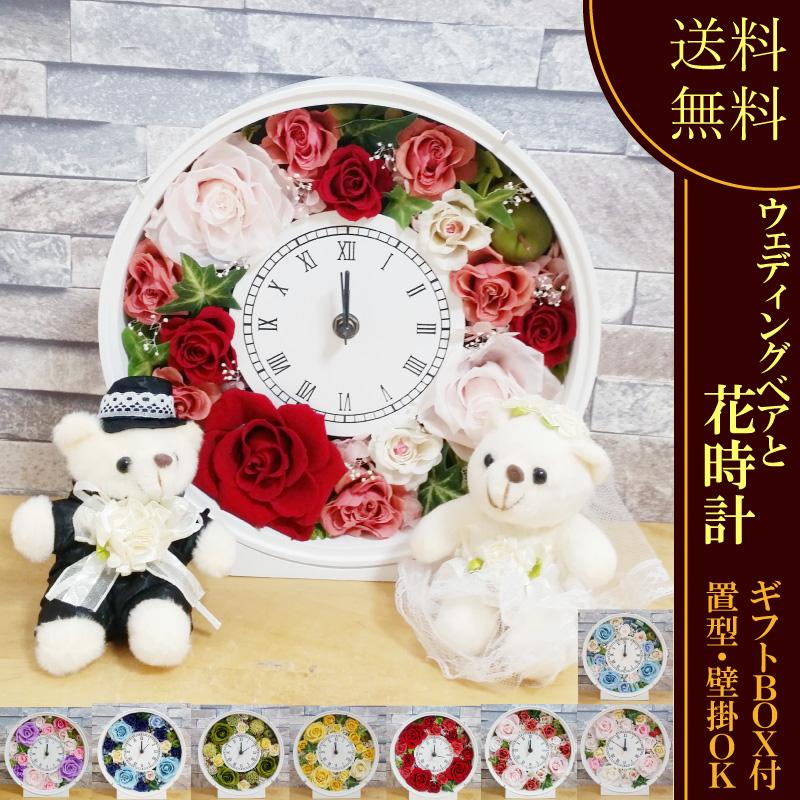 通販モール 祝電 結婚祝い 電報 プリザーブドフラワー ウェディングベアと花時計 プレゼント 壁掛け ガラス バラ 結婚 結婚式 ブリザード 送料無料 安いファッション Ssl Daikyogo Or Jp